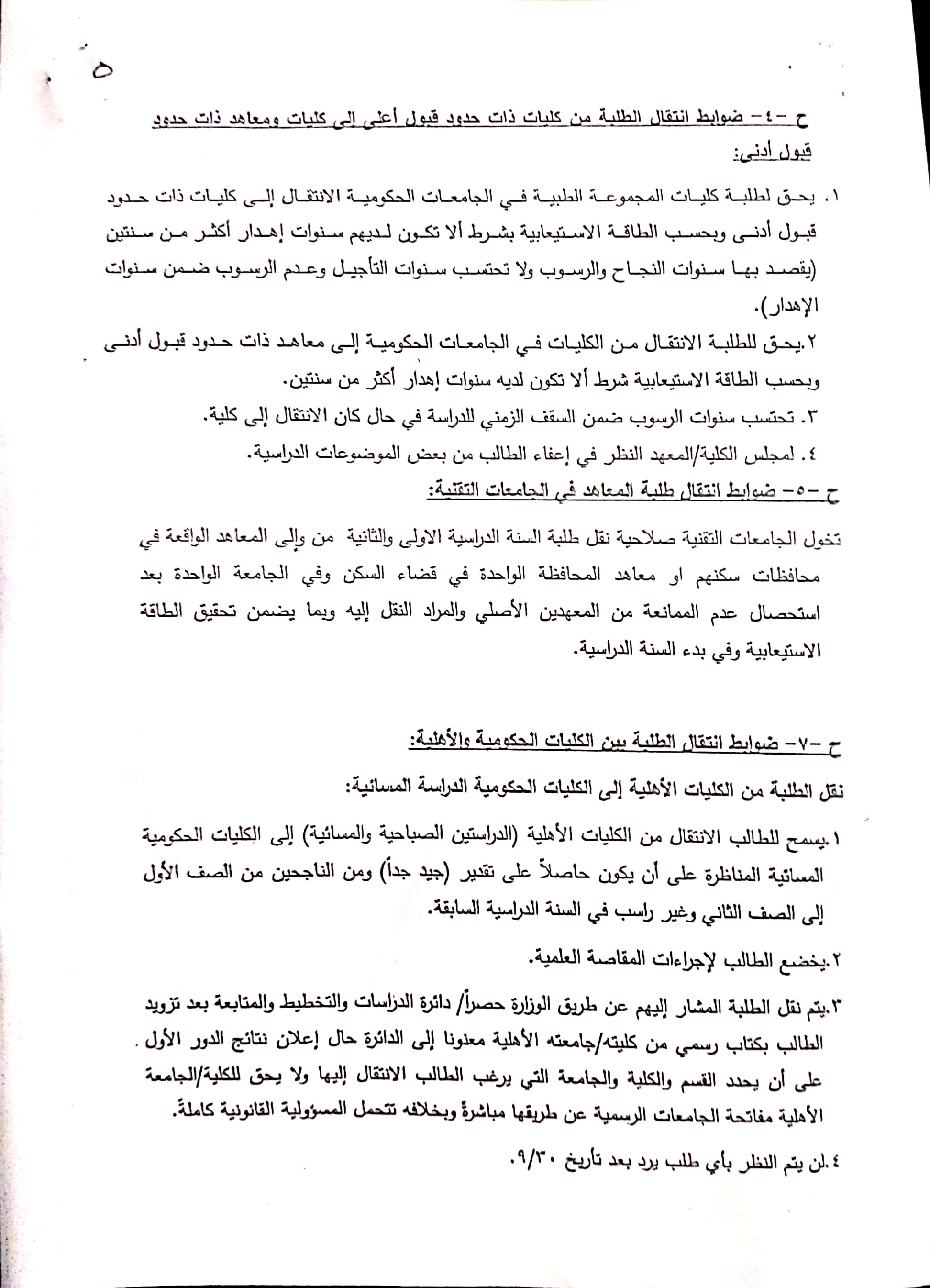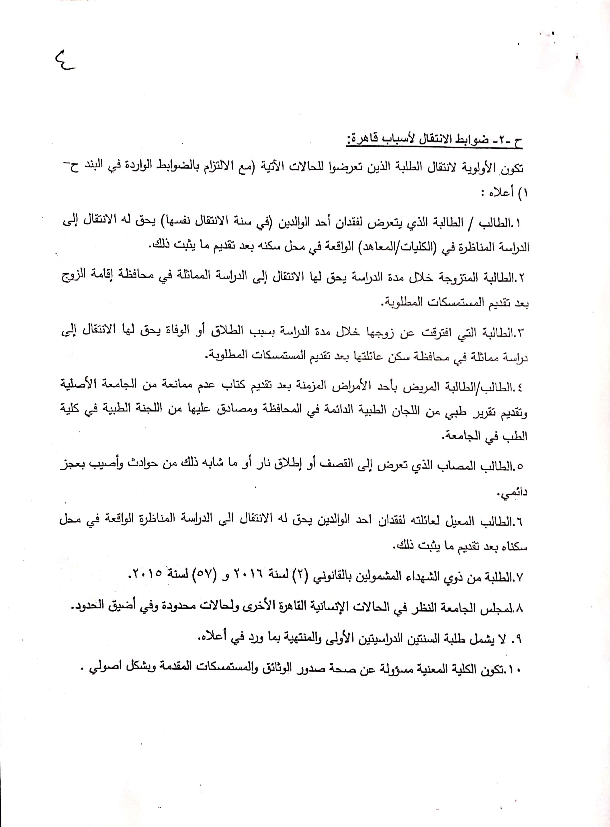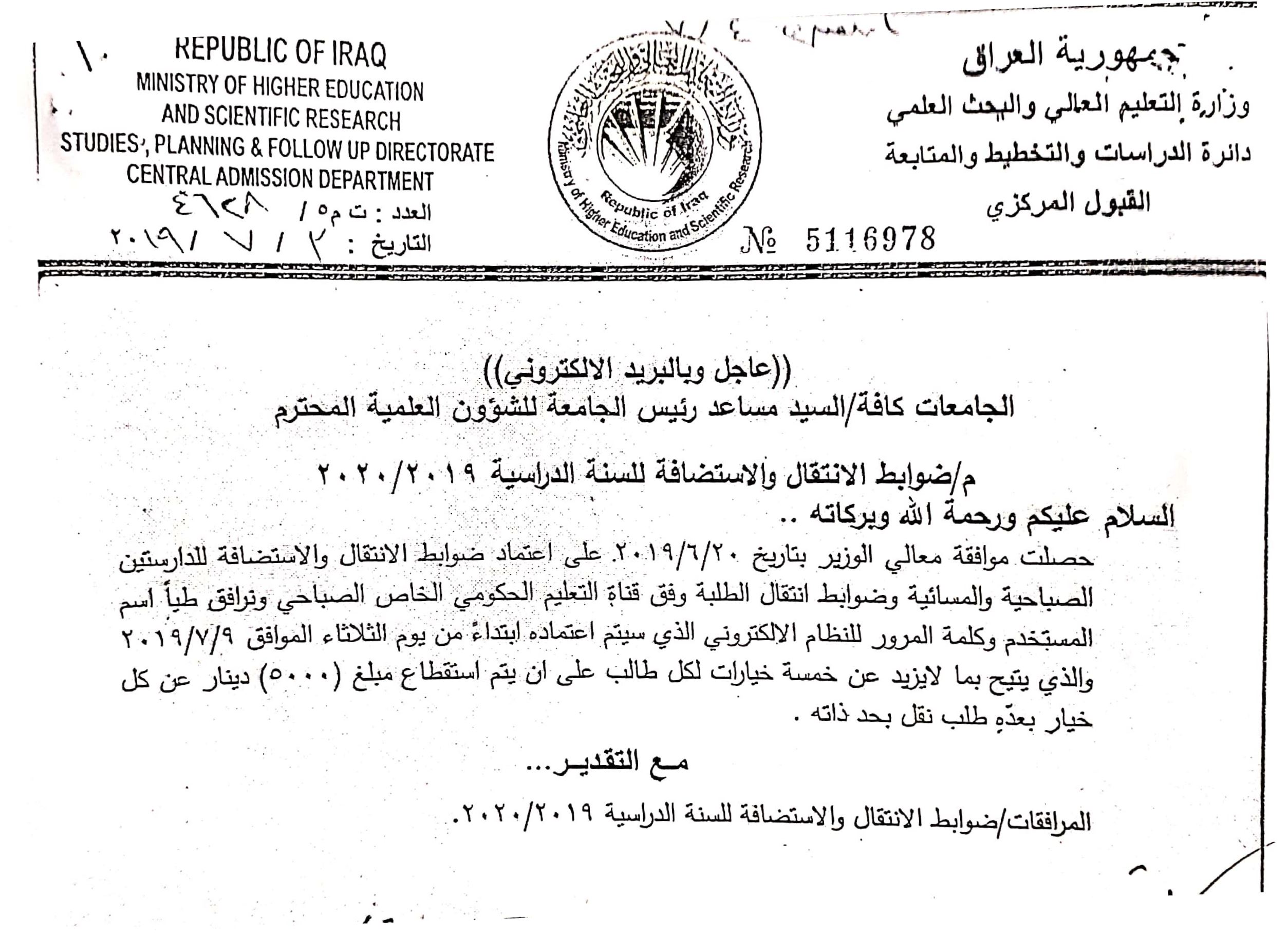 6. ضوابط الانتقال والاستضافة للسنة الدراسية 2019-2020