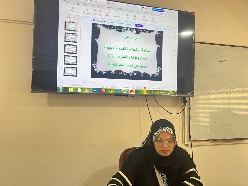 تضمنت الدورة محاضرات علمية قدمها الاستاذ ايمان ابراهيم عوض والمدرس المساعد اسيل احسان محمود والمدرس المساعد وسن صاحب عطية تناولت المحاور الاساسية للتعامل الآمن مع الاجهزة التشخيصية المتقدمة خاصة المفراس الحلزوني الذي يعتمد على الاشعة السينية عالية الطاقة في انتاج صور دقيقة لأعضاء الجسم حيث اشارت المحاضرات الى ان التعرض المتكرر او غير الضروري لهذا النوع من الفحوصات قد يؤدي الى زيادة تراكمية في احتمال الاصابة ببعض الامراض السرطانية