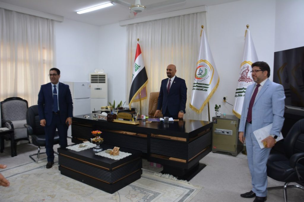 وشهد مكتب السيد العميد توافد عدد من المنتسبين لتقديم التهاني بهذه المناسبة، حيث عبر الدكتور اليساري عن اعتزازه بهذه المبادرة، مؤكدا أن أجواء العيد تمثل محطة مهمة لتعزيز أواصر المحبة والتعاون بين منتسبي الكلية.