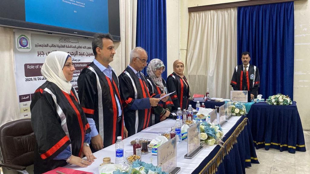 كما تناول الطالب حسين عبد الرحيم في رسالته الإنترلوكين-40 و41 كمؤشرات حيوية في اعتلال الكلى السكري، دور هذه البروتينات في تقييم شدة الإصابة ومضاعفاتها، الأمر الذي يسهم في تطوير وسائل تشخيص دقيقة تسهل متابعة المرضى.