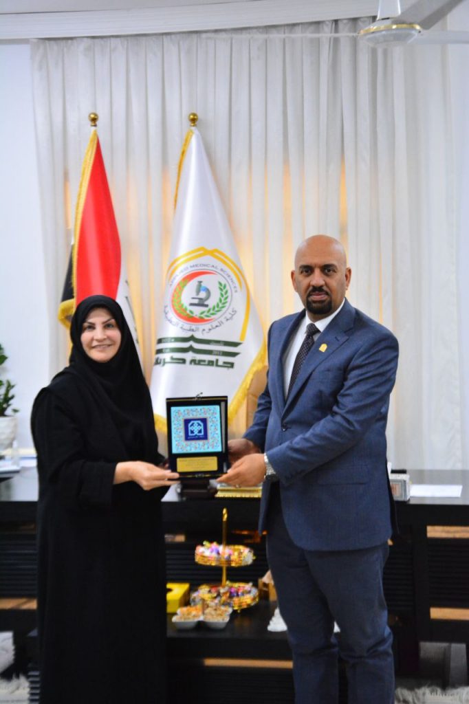 وناقش الوفد الزائر مع عميد الكلية الأستاذ المساعد الدكتور حسن فيصل اليساري إمكانات تنفيذ مشاريع بحثية مشتركة والإشراف المشترك على طلبة الدراسات العليا وتبادل الخبرات في مجالات العلوم الطبية، والتنسيق في مجال تبادل الممتحنين الخارجيين لضمان رصانة إجراءات التقويم.