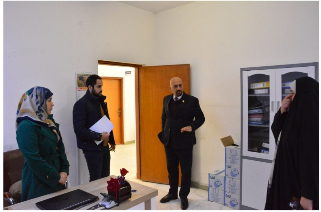 The Dean of the College of Applied Medical Sciences at the University of Kerbala, Assistant Professor Dr. Hassan Faisal Al-Yasari, conducted an inspection tour covering the college’s infrastructure to assess the condition of the facilities and follow up on the progress of administrative work.
